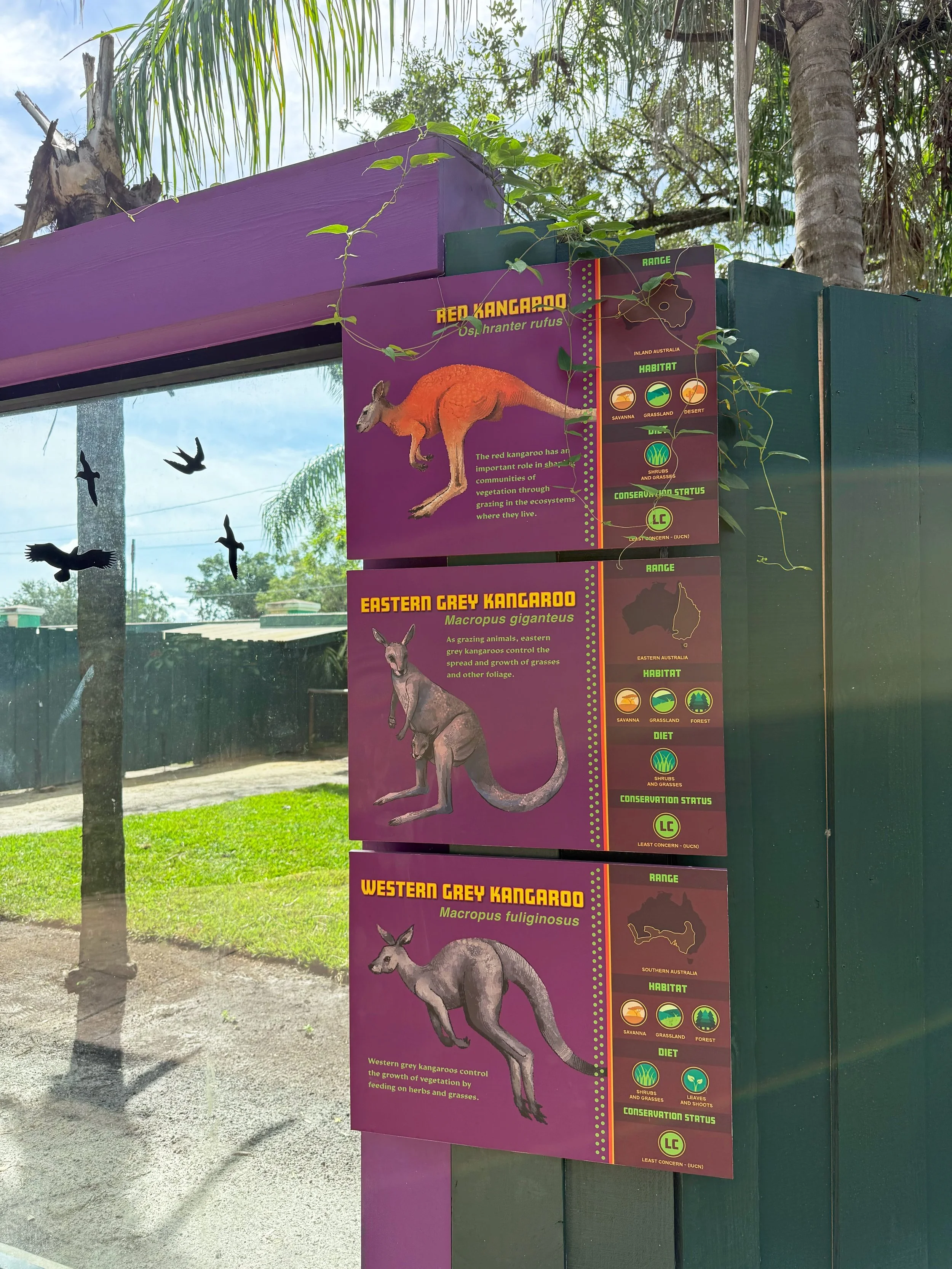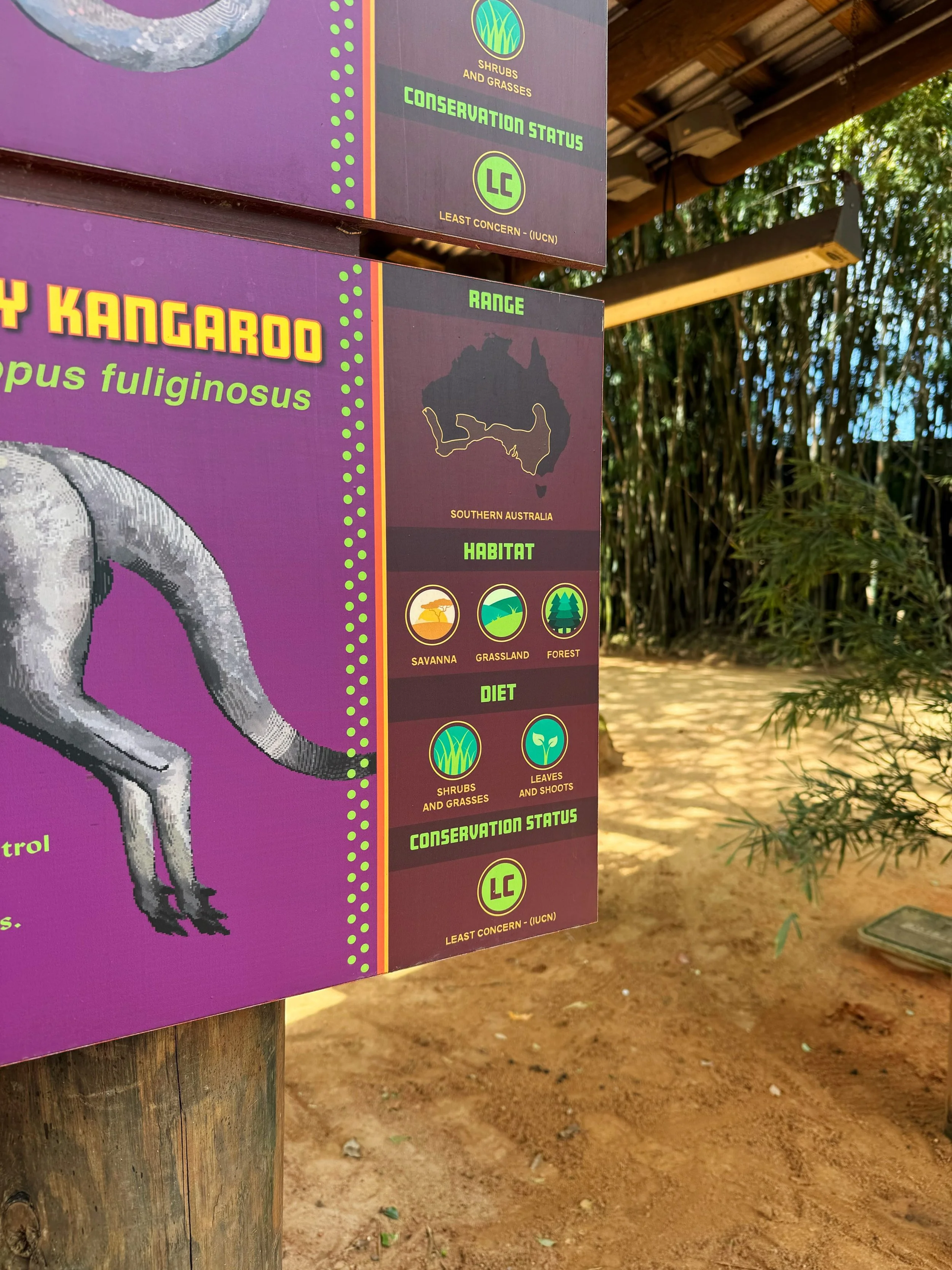 I helped with signs supporting the main branding of Kangaloom and the Aviary. I designed the template educational kangaroo sign and icons to be paid with illustrations and information about each kangaroo.