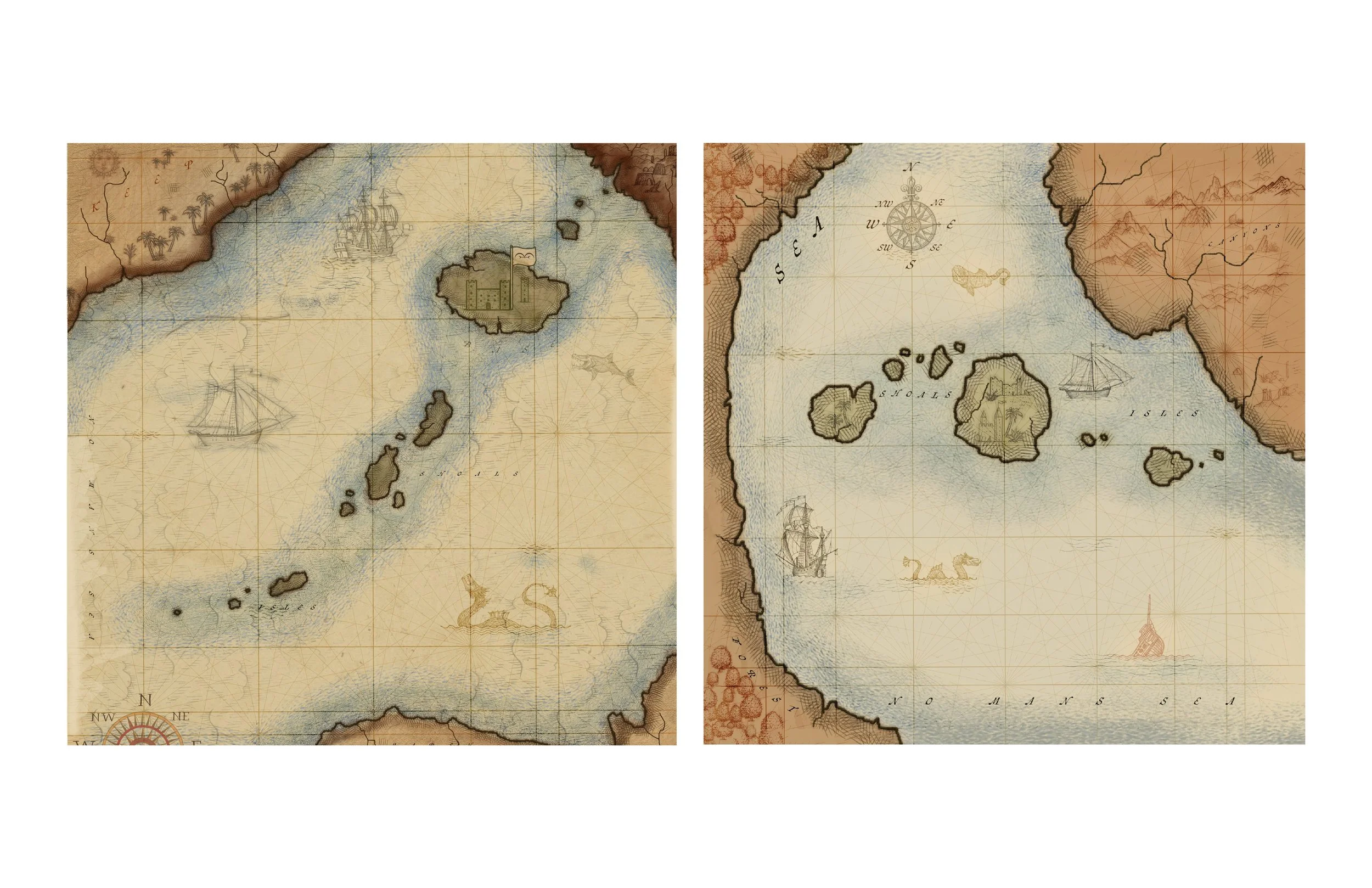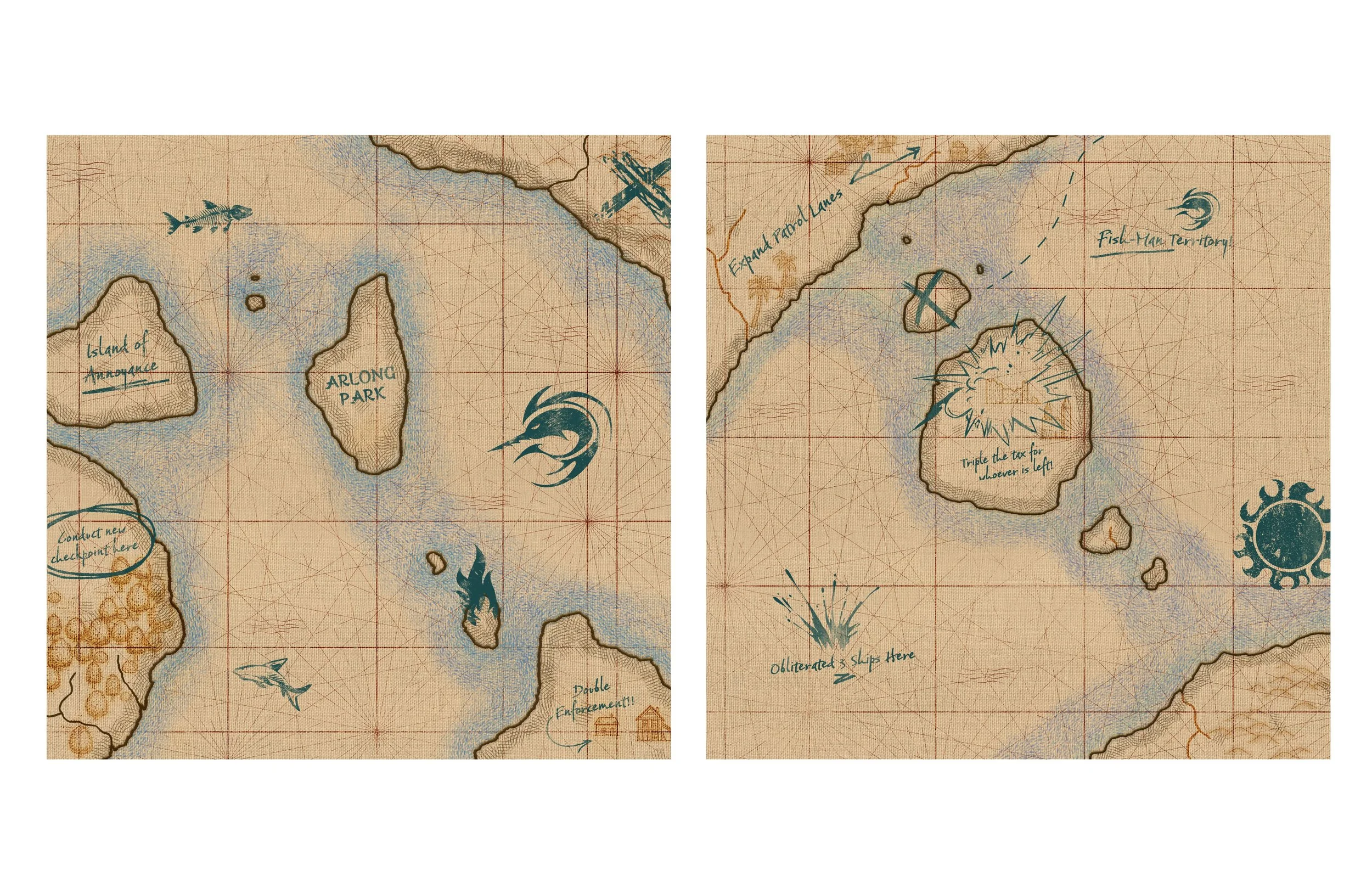 I was contracted through Mycotoo to create graphics for the One Piece experience at Netflix House, Philadelphia. Guests would advance through the space like an escape room, interacting with the different graphics in each scene.