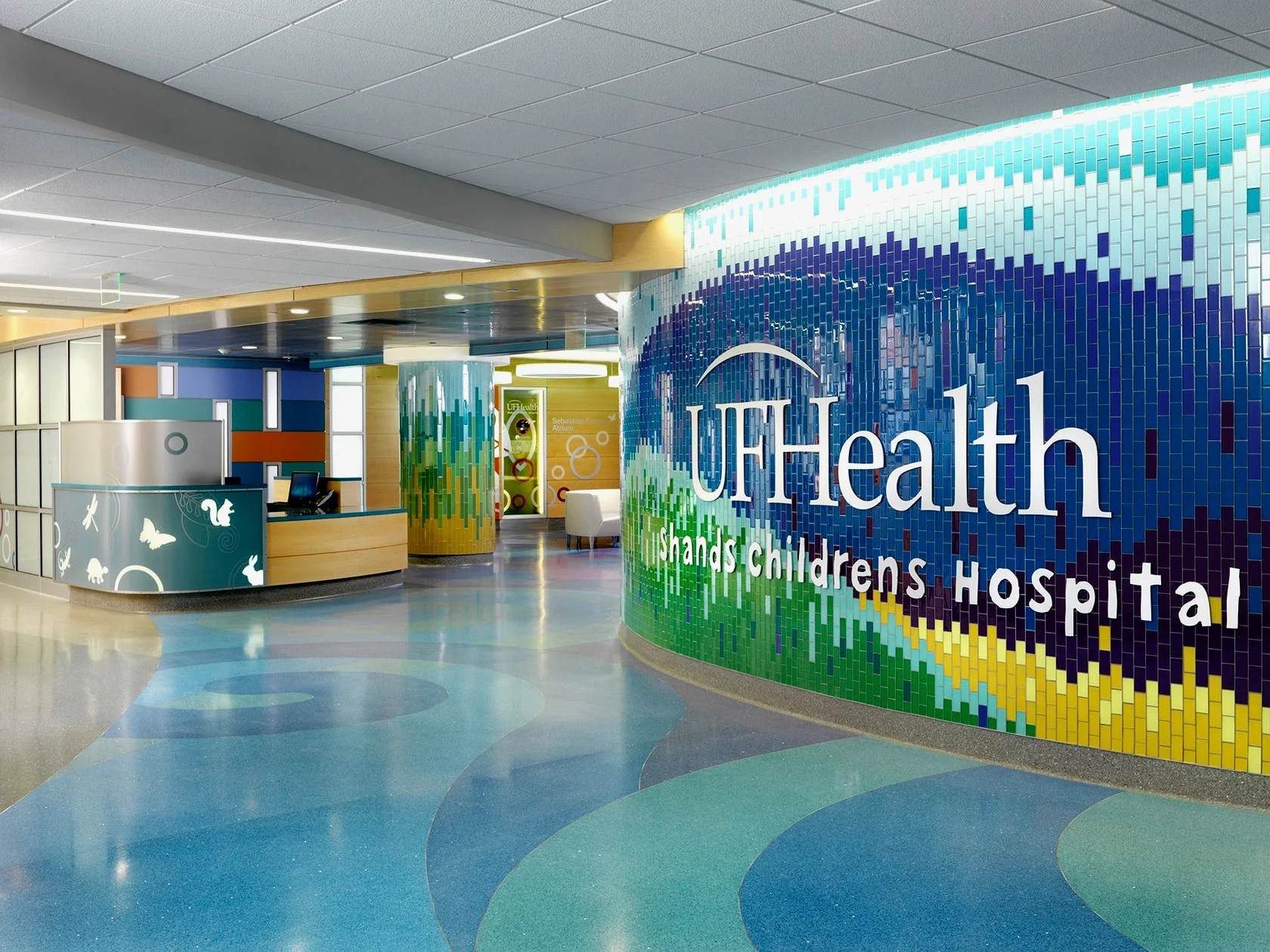 To build our colors, we decided on a three-part monochromatic palette to represent check-in, the hospital room, and the operating room. We chose calming colors and ones that would correspond with the interior of Shands. These backgrounds also allowed our characters to stand out and demonstrate how the kids will move throughout the different rooms of the hospital.